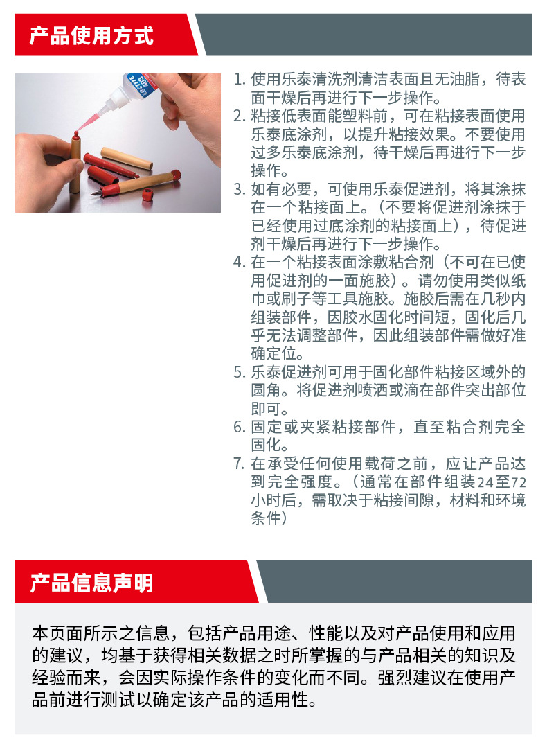 •快速固化,可靠性强,高性能表现•可快速粘合多种不同材料•安全性高,易于使用
