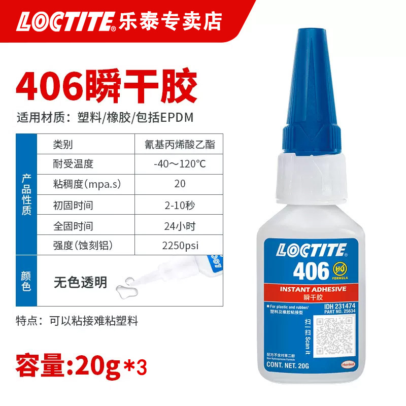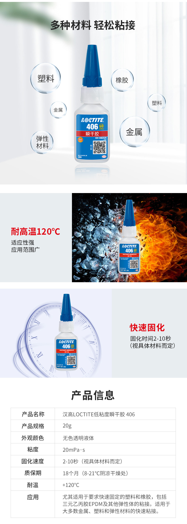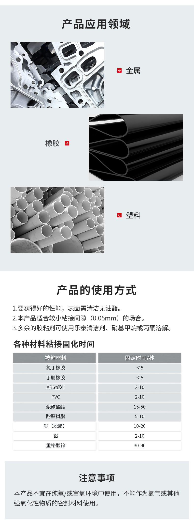 - 在塑料和橡胶(包括三元乙丙橡胶)上可实现极短固定时间