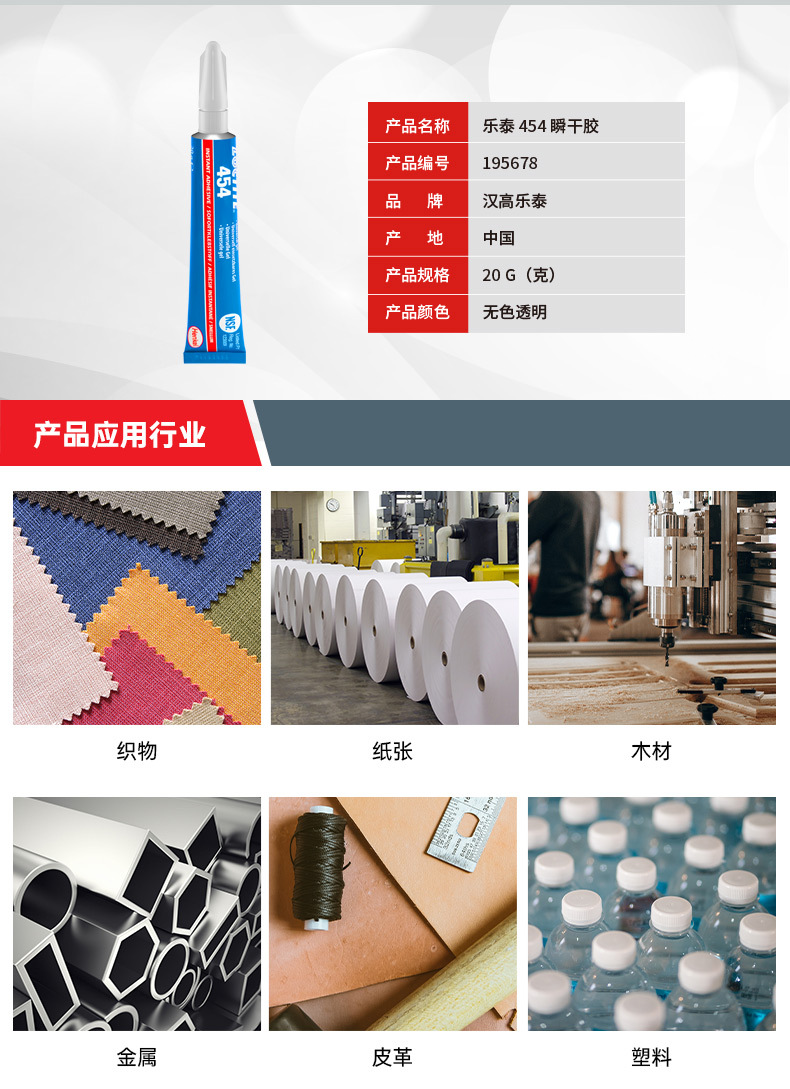 这是一款单组分凝胶型快速初固瞬干胶,它对需要粘接的表面不敏感,适用于多孔和酸性基材。