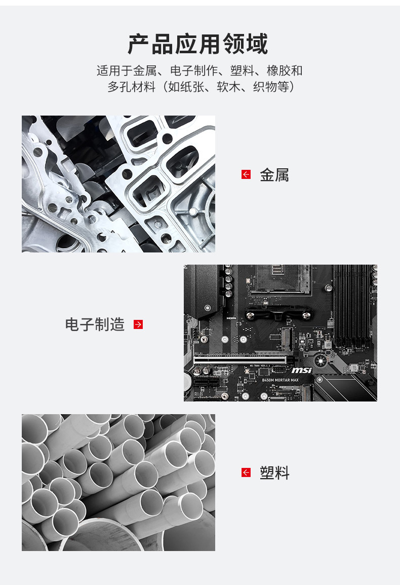 | 适用基材 | 金属、塑料、弹性体和吸收性材料 |