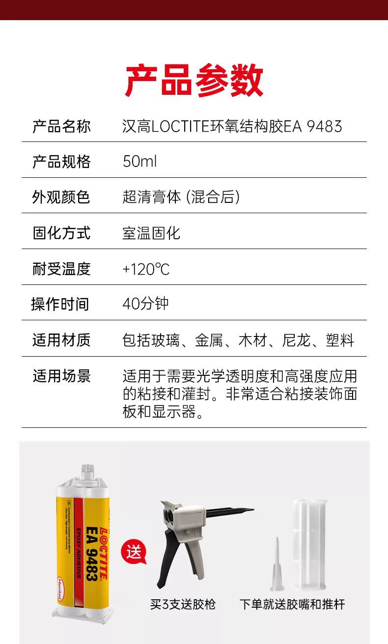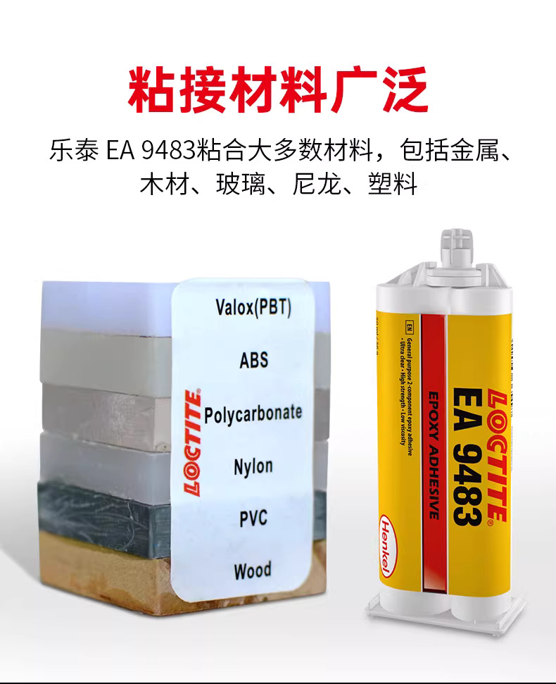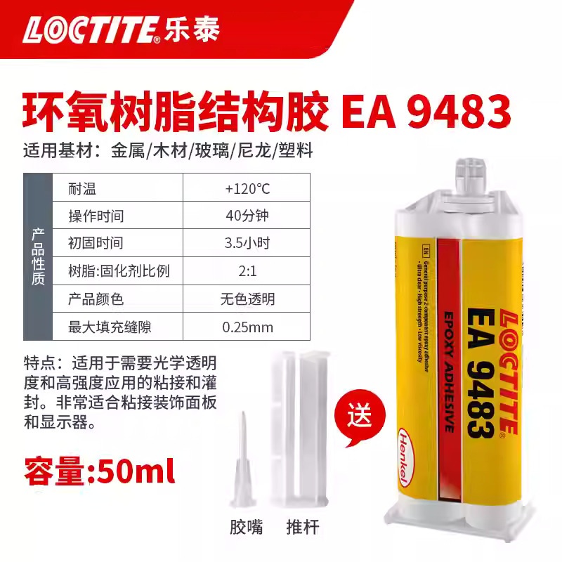 LOCTITE® EA 9483 为无色工业级环氧树脂粘合剂,适用于需要光学透明和高强度的粘合/灌封。通常用于装饰面板和显示屏粘合。其在室温下三天内固化,形成具有优异的宽温域尺寸稳定性的超透明胶层。LOCTITE EA 9483 具有优异抗冲击性,可耐受多种化学品和溶剂。