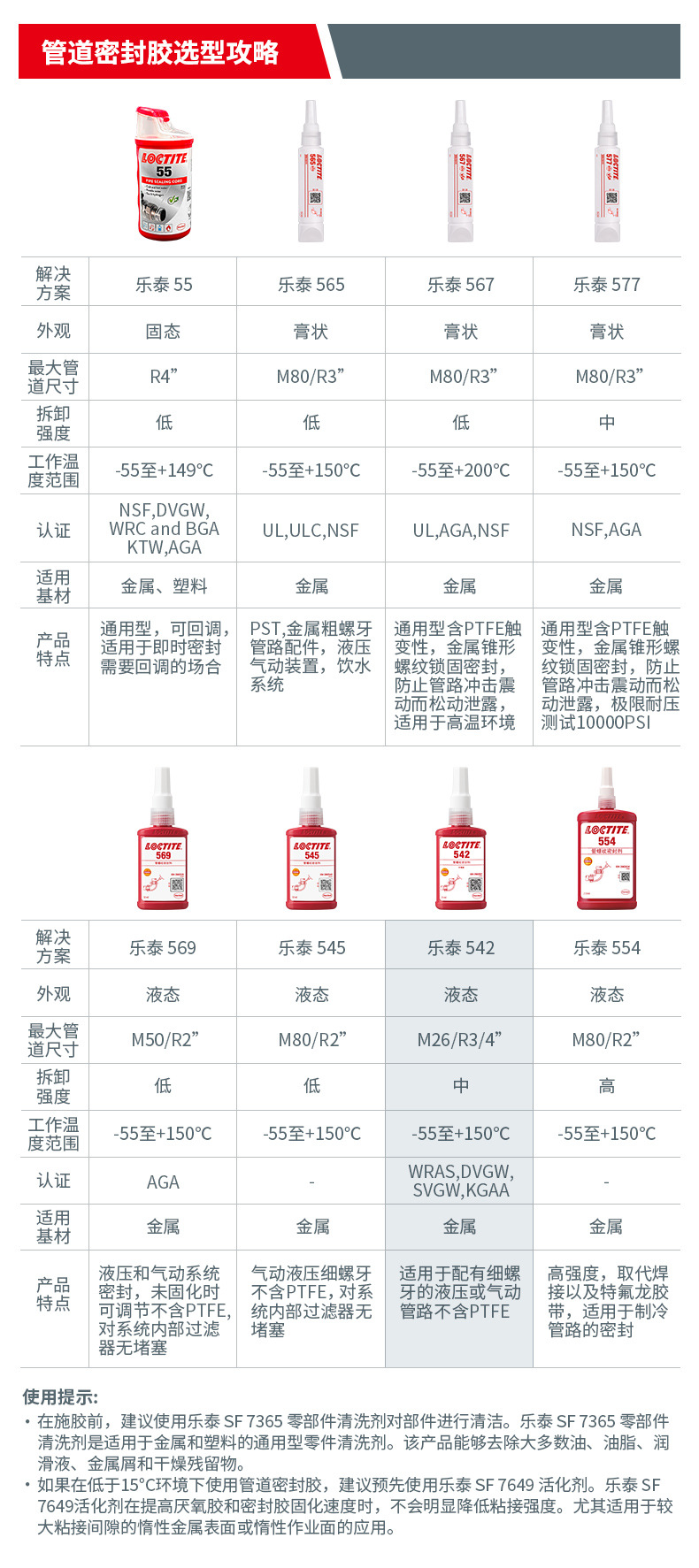 乐泰577; •用于粗牙螺纹部件上的通用密封•适用于需要低温的环境,例如室外器械维护乐泰55•通用密封——螺纹管和设备密封剂•快速、简单、可靠的全压密封•适用于塑料和金属螺纹表面应用