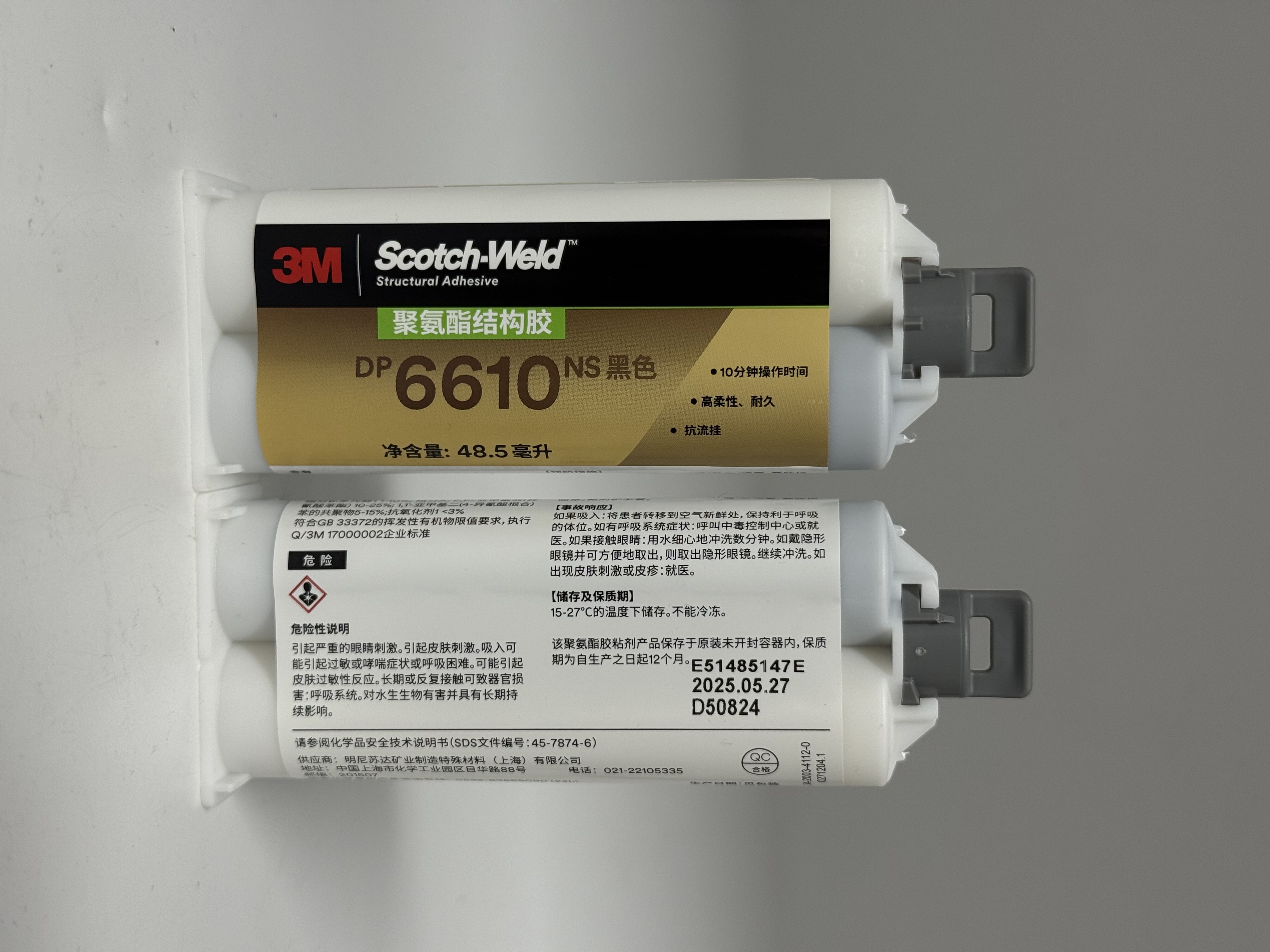 - 混合:用3M EPX 胶枪 + 静态混合管,1:1 均匀混合,出胶前弃去前端2–3cm。