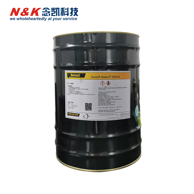 Zerust Axxanol 33CD-24 是北美防锈(Zerust/Excor)旗下一款溶剂型、指触快干的防锈油,核心优势为 “速干、不粘灰、免清洗”,适配室内短期防护与 VCI 包装联用的长时防护场景。 核心速览 关键参数(参考) 项目 数值 表干时间 约 30 分钟 油膜厚度 约 12–25 μm 闪点 ≥38 ℃(≥100 ℉) 盐雾测试(ASTM B117) 约 4 小时 施工方式 浸泡、喷涂、涂刷 去除方式 碱性清洗剂或溶剂型清洗剂 核心优势 典型应用 使用要点 与同类对比 产品参数