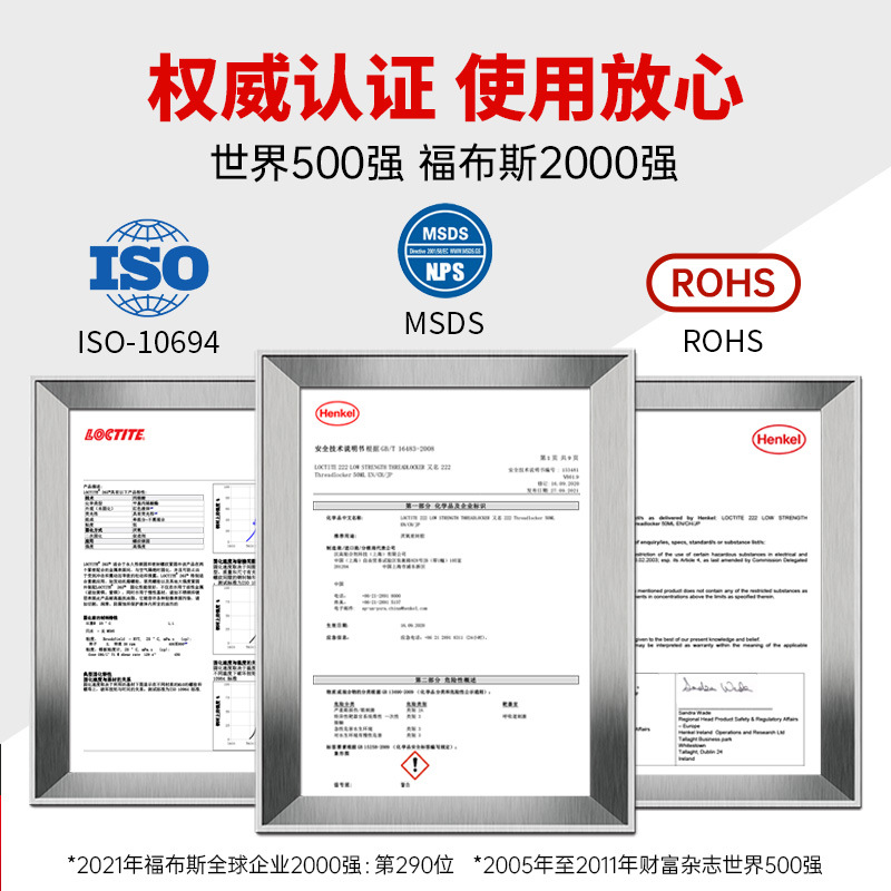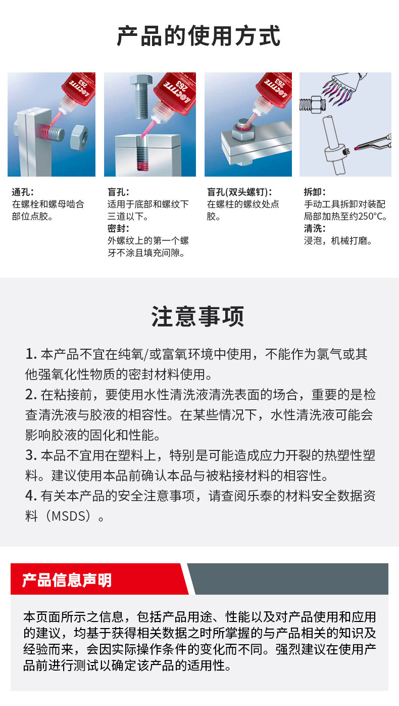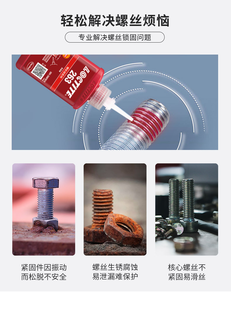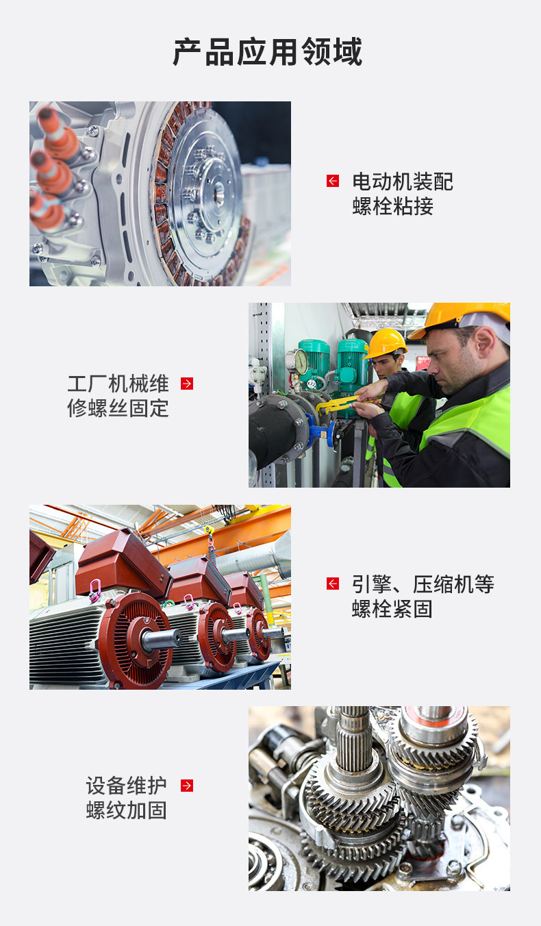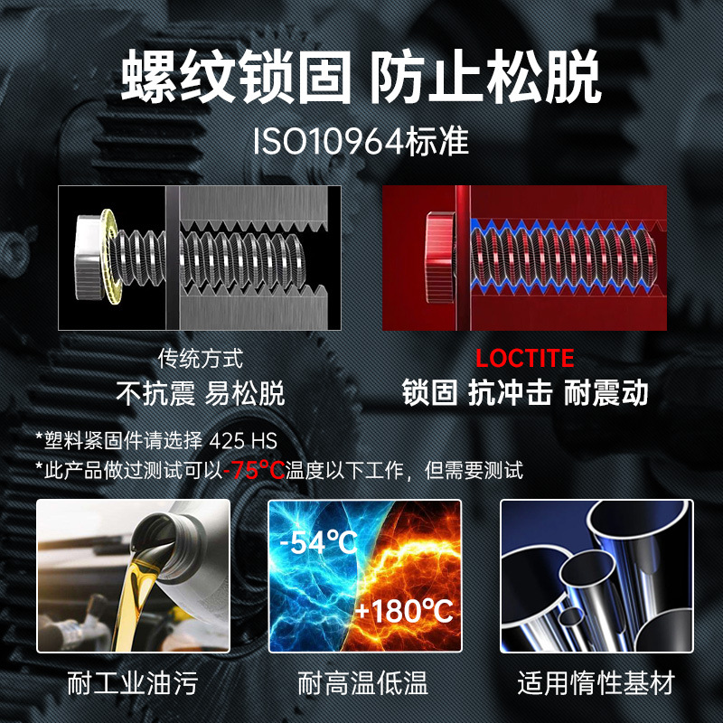 简单易用 / 有效防松 / 耐热高达180℃ / 防锈防腐 / 便于拆卸/减少库存成本