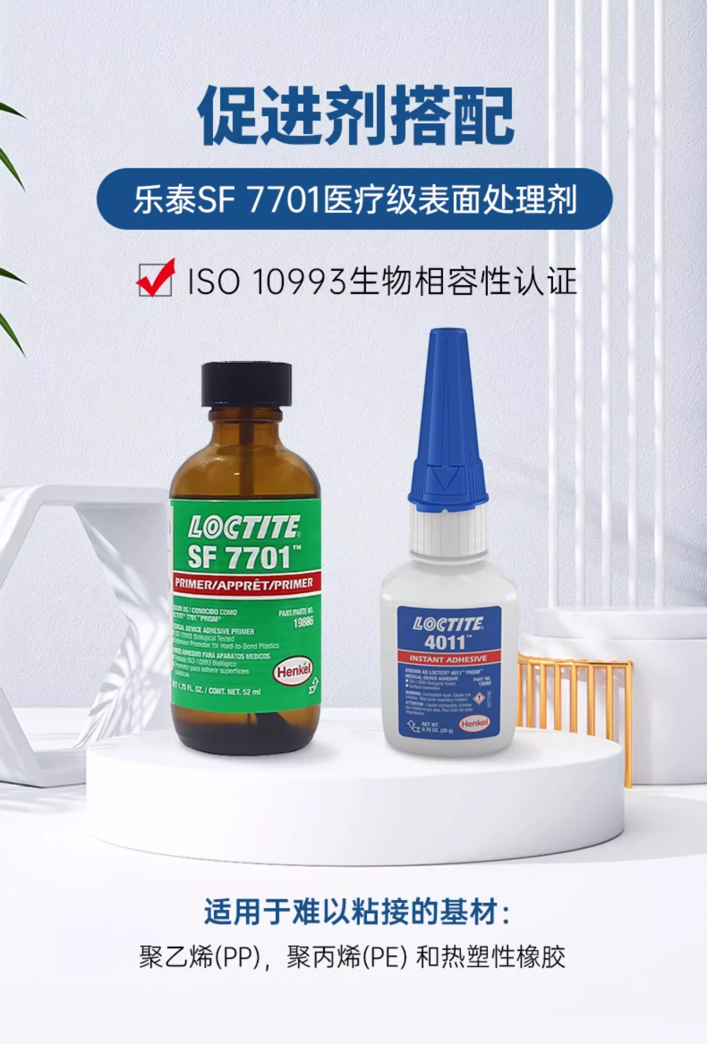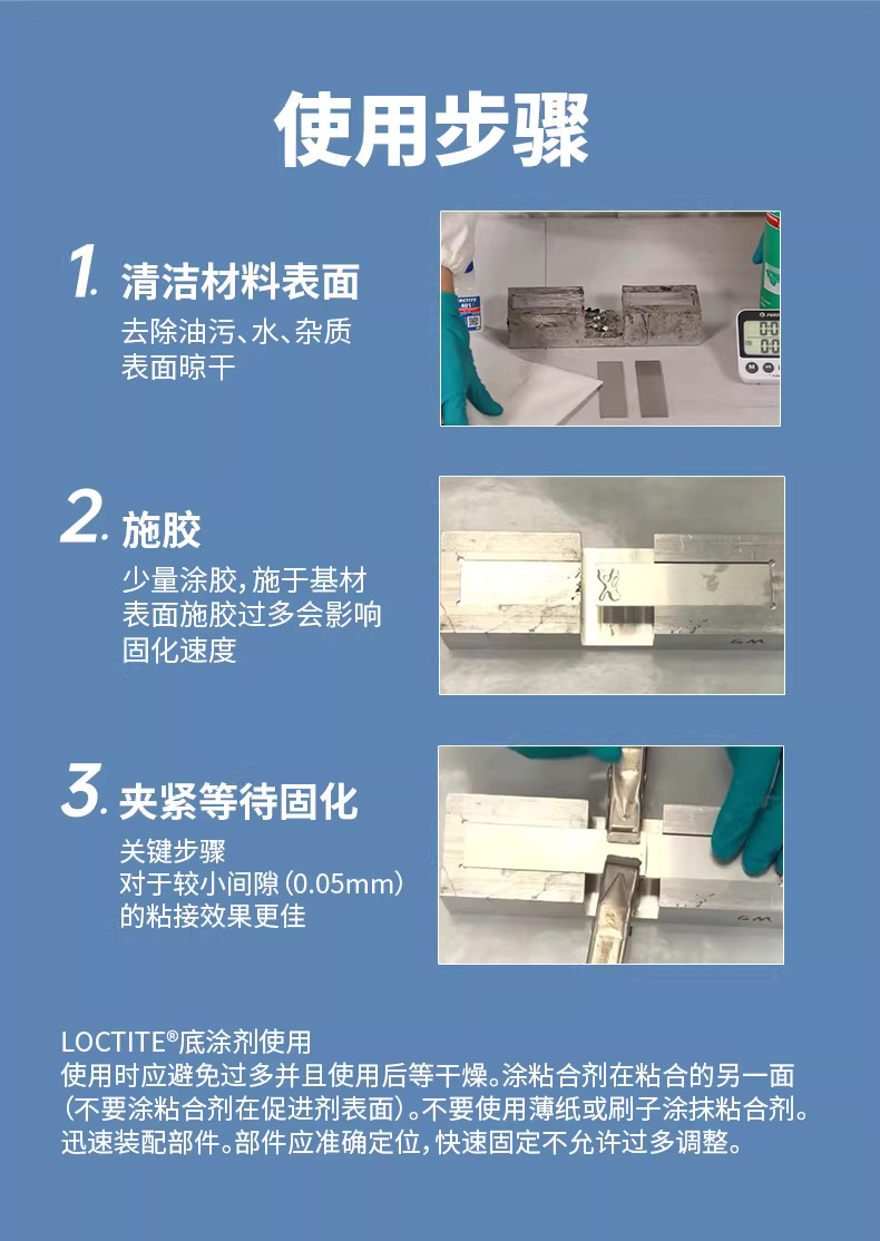 - 搭配 LOCTITE SF 7701 底漆使用可组装难粘材料