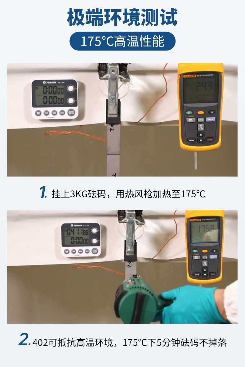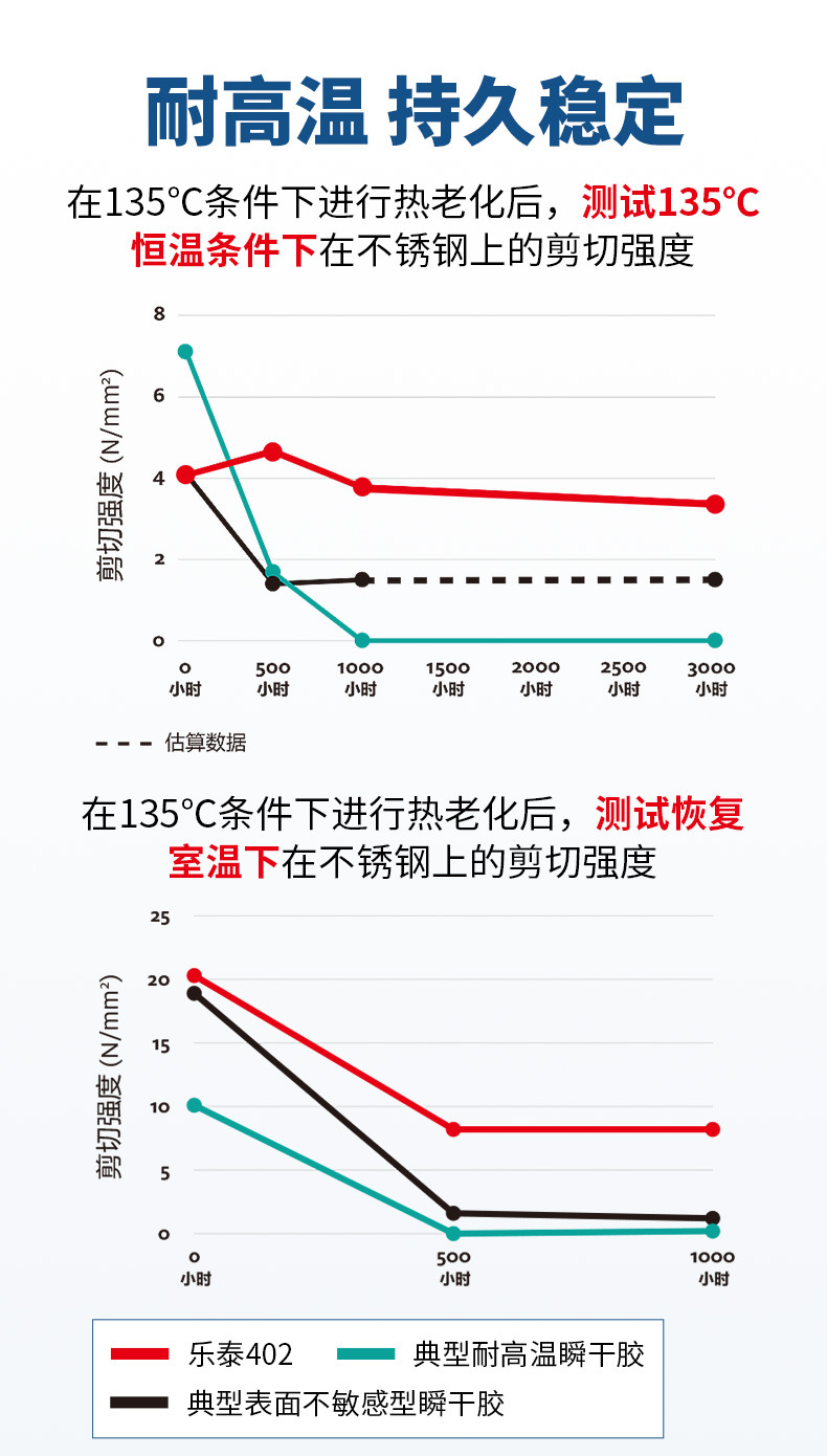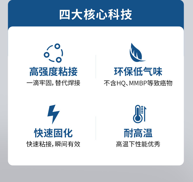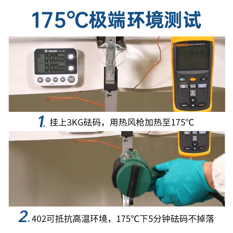 - 超高性能的粘合剂,可耐受高达 135°C (275°F) 的温度并实现快速初固
