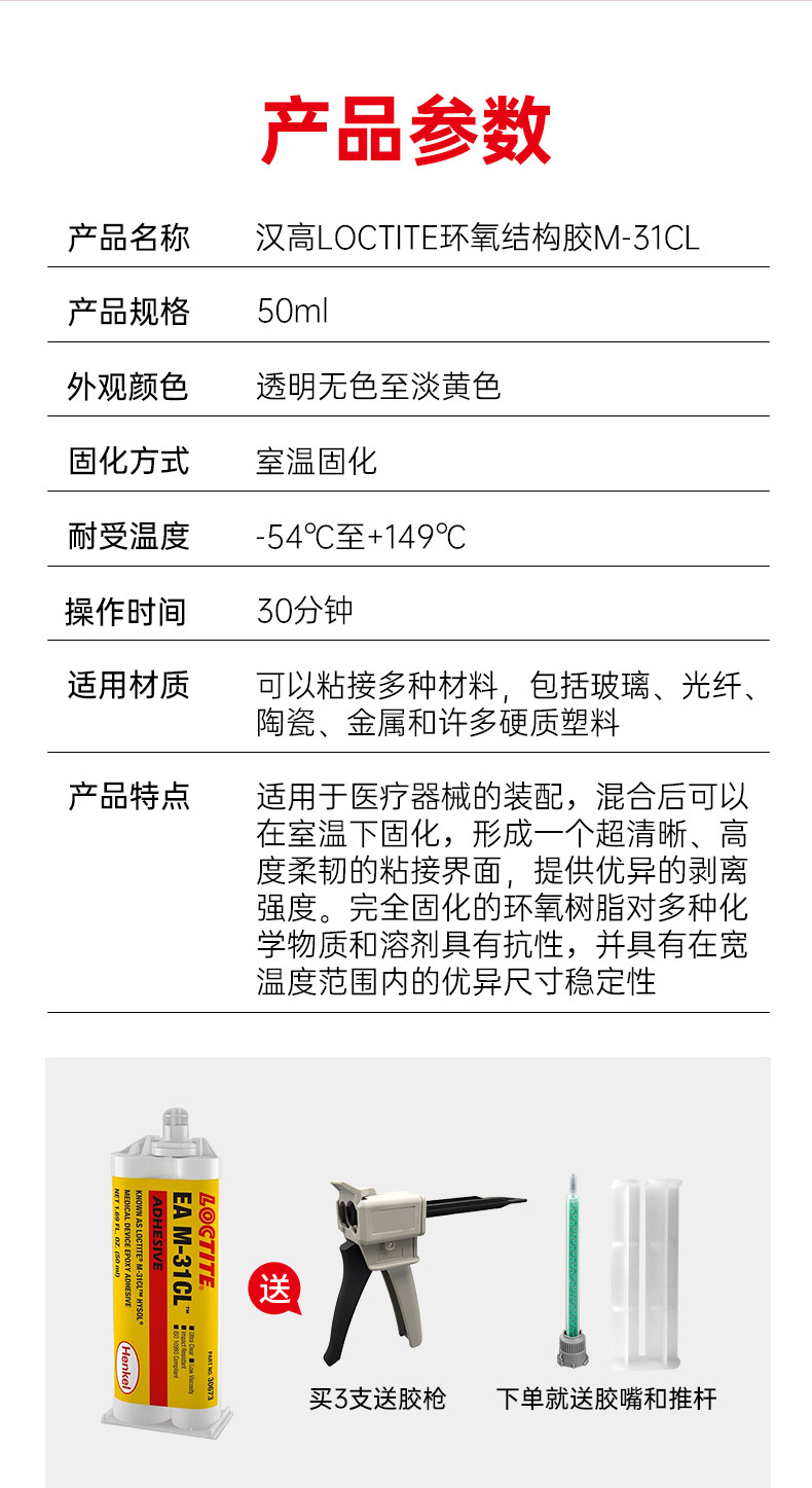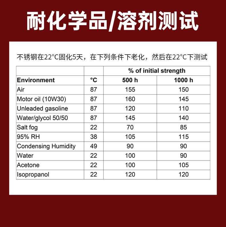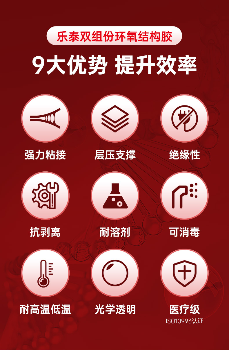 1.高强度加上较高的耐冲击型和耐剥离性2.与油污不洁金属表面相兼容3.耐受高温和侵蚀性化学制品4.在夹紧装配中可防挤出5.不同的晾置时间,以满足加工需要6.快速固定周期,可在极少时间内对强度进行处理7.胶层应力分布均匀8.替代和或减少焊接、铆钉和机械紧固件,具有成本效益