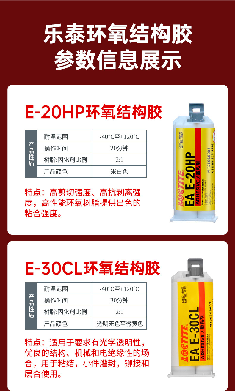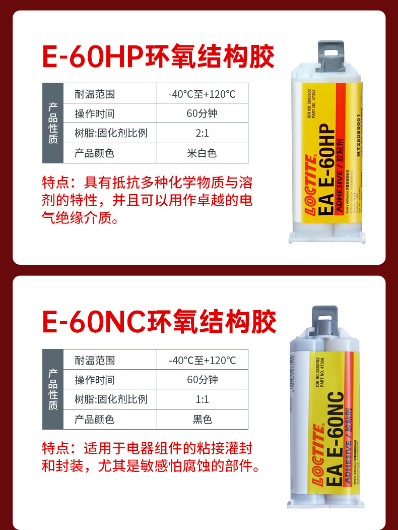 接缝密封:乐泰5510、乐泰5570灌封与封装:乐泰E-60NC环氧树脂结构胶、乐泰5600硅酮粘合剂密封胶