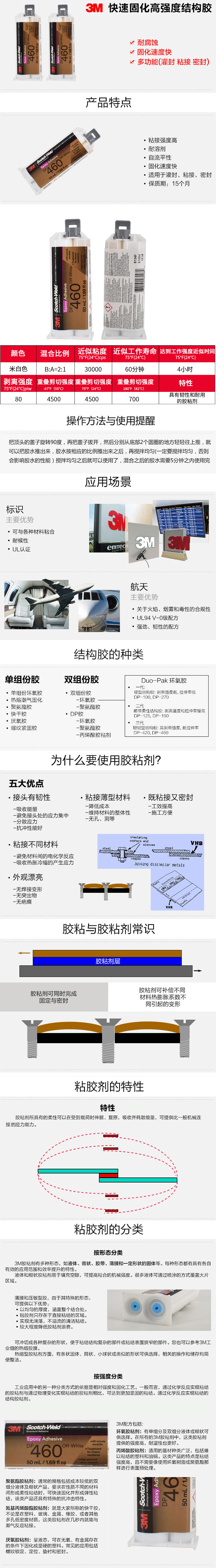 3M™ Scotch-Weld™ 环氧树脂胶粘剂DP460是一款高性能、增韧型双组份环氧结构胶,主打高强度、耐冲击、长操作时间,广泛用于工业与航空航天等严苛工况。