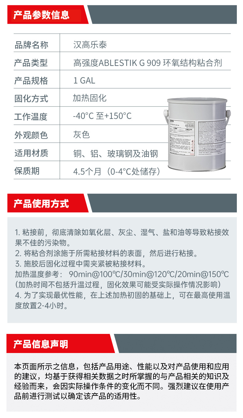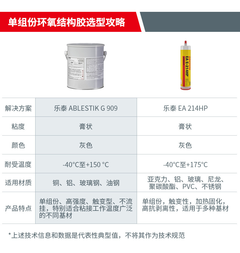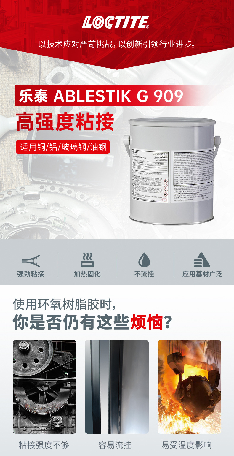 乐泰LOCTITE® ABLESTIK G 909专为超高强度而设计结构粘接,尤其是针对不同基材的粘接暴露于各种工作温度下。