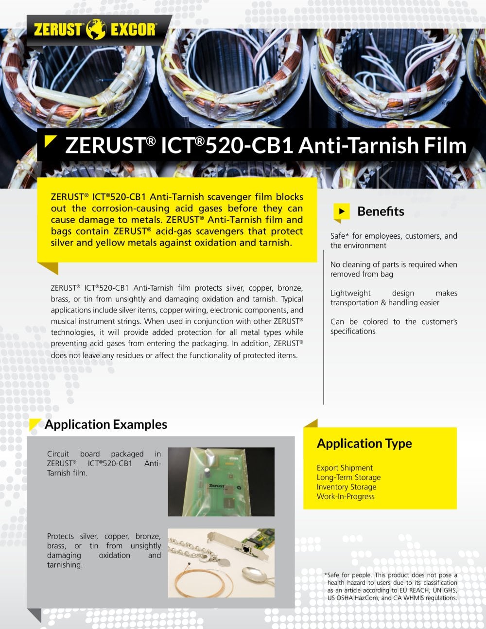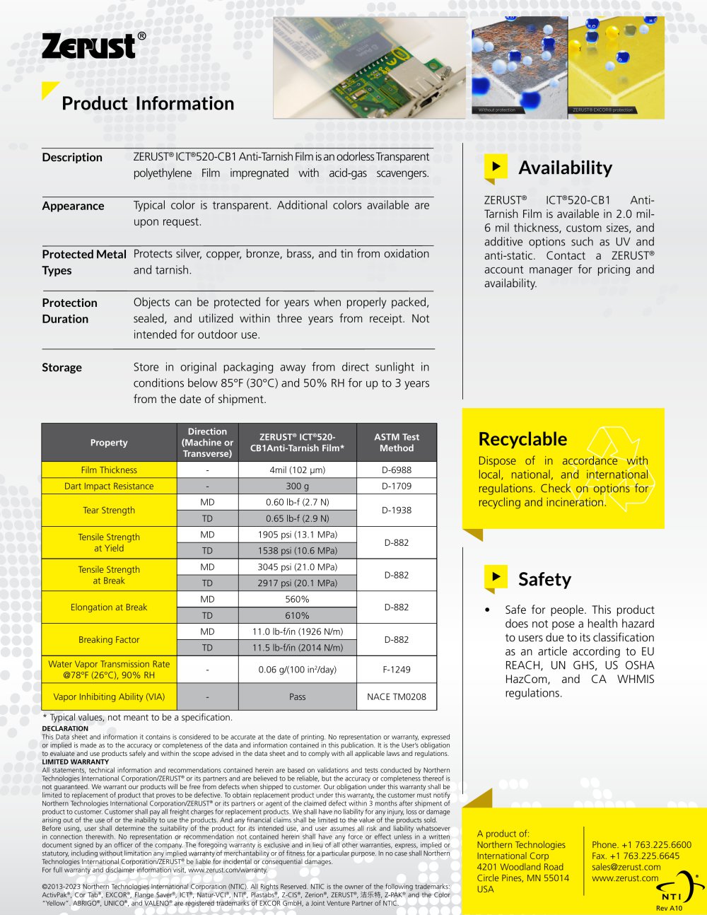 - 产品全称:Zerust ICT®520-CB1 Anti-Tarnish Film(抗氧化膜)