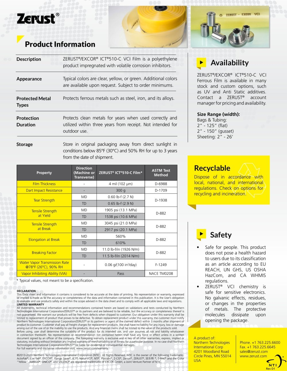 Zerust ICT510-C VCI 黑色金属防锈膜是北美防锈(Zerust/Excor)旗下经典的气相防锈(VCI)包装材料,专为钢、铁、铸铁等黑色金属提供长期、清洁的防锈保护。Zerust®/Excor®ICT®510-C VCI黑色金属防锈膜在运输和储存过程中为金属提供了具有成本效益和多功能的腐蚀防护。防护金属类型有黑色金属、有色金属、多金属。我们可为您提供防锈卷膜、防锈片、防锈筒膜、防锈袋等产品的不同尺寸的定制。